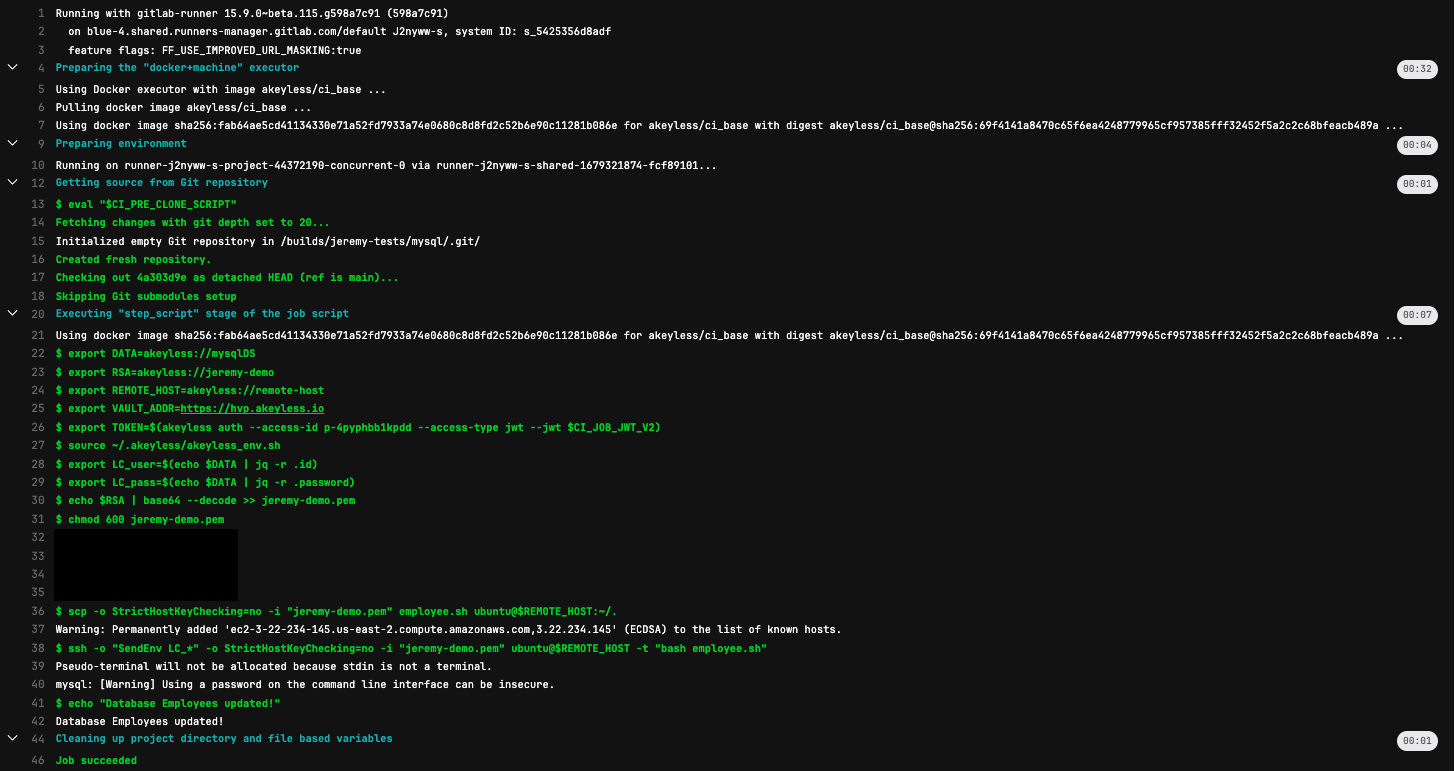 - Export the remote host by running `akeyless get secret value` grabbing the remote host secret from Akeyless that I saved, which is the host where our MySQL database is located.